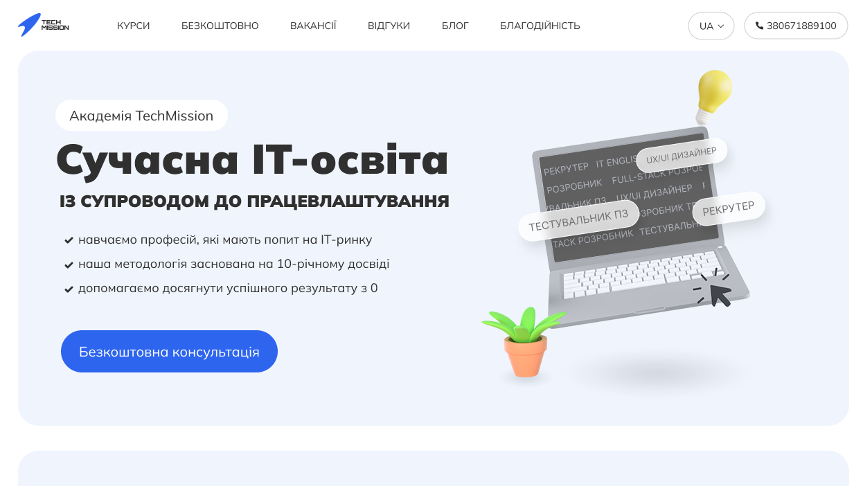 Techmission, Page for Recruiting in IT course